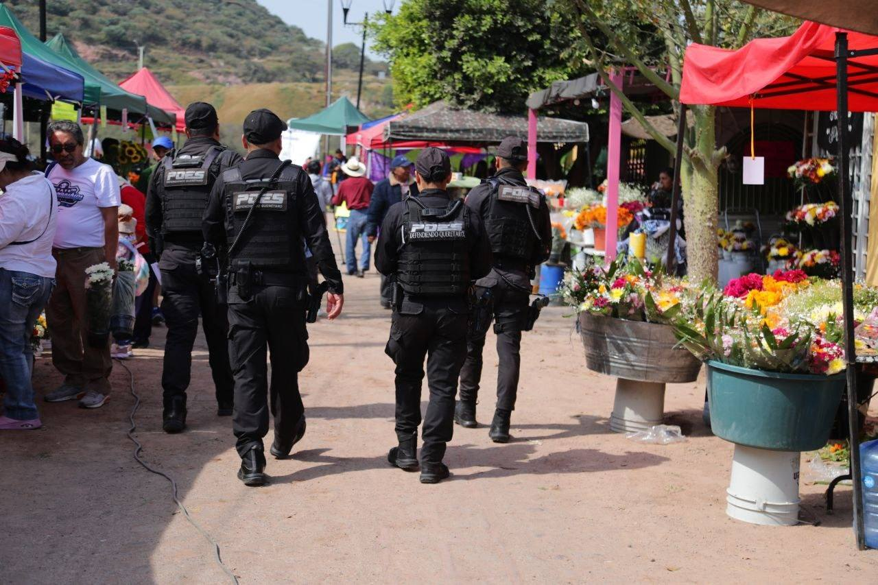Policías Estatales mantuvieron presencia preventiva en los accesos, alrededores e interiores de los panteones así como en espacios públicos con actividades conmemorativas, con el objetivo de brindar seguridad a las familias que acudieron a recordar a sus seres queridos.